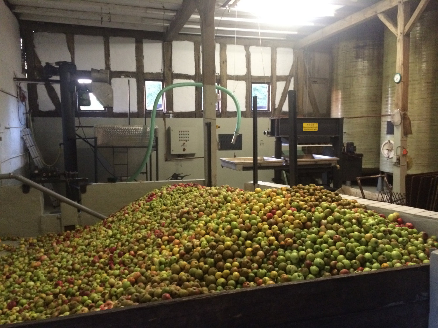 Wir pressen mit einer traditionellen Packpresse — aufwändiger als moderne Methoden, aber mit einem entscheidenden Vorteil: eine wesentlich höhere und schonendere Saftausbeute. Handgemacht heißt bei uns nicht Marketing. Es heißt: mehr Aufwand für besseren Geschmack.